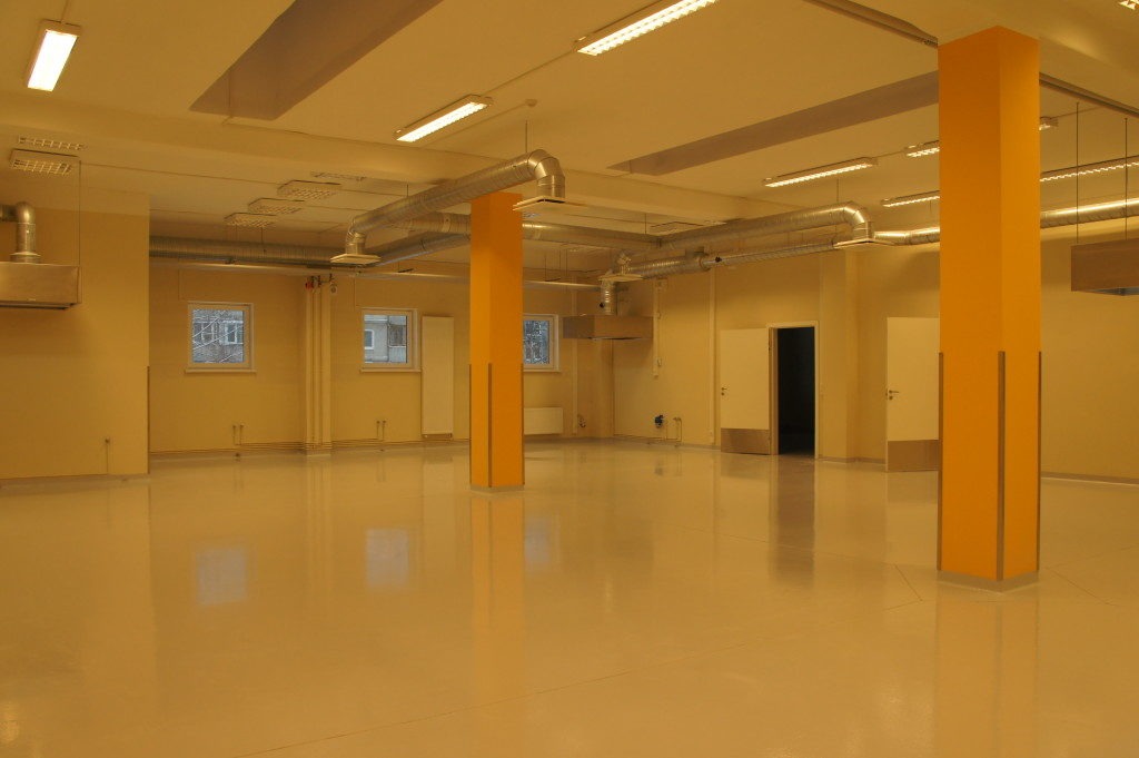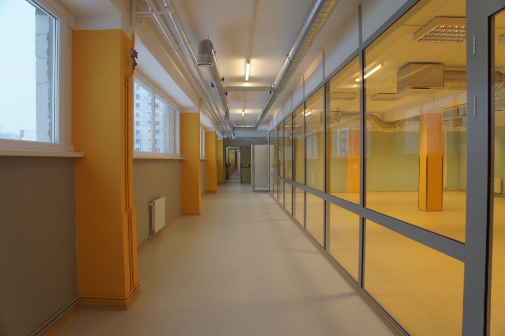 Klimata pārmaiņu finanšu instrumenta (KPFI) projekta ietvaros Rīgas pārtikas ražotāju vidusskolas infrastruktūras renovācijas un energoefektivitātes uzlabošanas nolūkos mēs 2011. gadā izstrādājām tehnisko projektu, darbus uzsākot 2012. gada janvārī un turpinot tos līdz 2013. gada aprīlim. Projektējām un izbūvējām visas vājstrāvas sistēmas, kā arī ēku vadības sistēmu un elektroinstalācijas mācību korpusos, dienesta viesnīcā un mācību darbnīcā. Tāpat izbūvējām arī energoefektīvu apgaismojuma sistēmu, kura īpaši piemērota videi, kas raksturīga pārtikas gatavošanas procesam. Apgaismojumam vajadzēja atbilst visām energoefektivitātes prasībām, vienlaikus nodrošinot arī vajadzīgo gaismas spilgtumu darba galdu virsmai. Visos objektos tika izbūvēts datu tīkls un ugunsgrēka atklāšanas un trauksmes izziņošanas sistēma, kā arī publiskās apziņošanas sistēma. Mācību darbnīcā izbūvējām apsardzes sistēmu, kā arī videonovērošanas sistēmu. Visos trijos korpusos izbūvējām ēku vadības sistēmu ar energoefektivitātes monitoringa sistēmu, tādējādi klients ik dienas var kontrolēt visus rādījumus un vizuāli redzēt, kādus labumus šī sistēma sniedz – piemēram, izmaksu ekonomiju salīdzinājumā ar iepriekšējo gadu. Informatīvie signāli tiek nosūtīti uz ēku vadības sistēmu arī no citām uzstādītajām sistēmām. Visos korpusos tika izbūvēti arī elektrotīkli – gan sadzīves rozetes un datu rozetes, gan apgaismojums un zibens aizsardzības tīkli. Tā kā šis galvenokārt bija energoefektivitātes projekts, tad tika siltinātas arī ēku fasādes, uz tām izvietojot temperatūras mērītājus, lai ar ēku vadības sistēmu varētu efektīvāk pārvaldīt un regulēt ēkas apsildi. Šī projekta galvenais uzdevums – panākt, lai visi skolas korpusi strādātu kā viens vesels, darbotos sabalansēti un gudri, ko īstenojām ar veiksmīgu ēku vadības sistēmas uzstādīšanu.